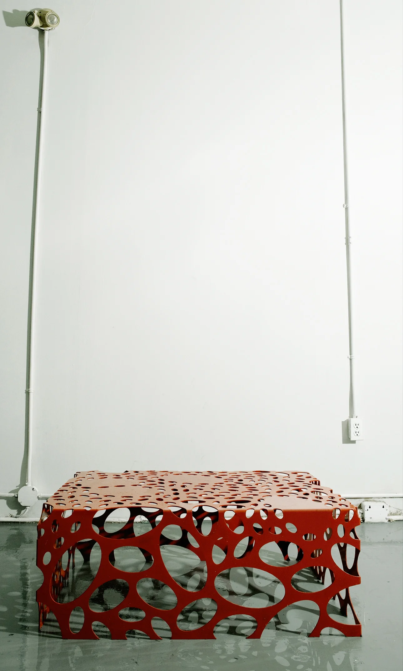 Mitosis Furniture are laser-cut, break-formed, welded and powder-coated steel pieces, which serve as studies of positive and negative space, as well as experimentations of light and shadow, while fusing both art and science. Photo by Lucas Collins.